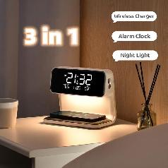 Alarm Clock with Wireless Charging, Dimmable Light and Charging Station Digital Alarm Clock for Bedroom, Bedside Desk.