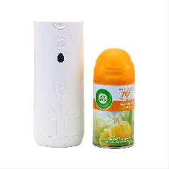 Designed to provide a burst of refreshing fragrance in your home, the set includes an automatic spray dispenser and a refill pack containing an orange and vanilla fragrance.