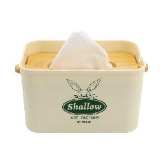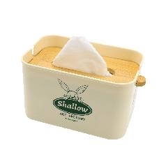 حافظة مناديل بلاستيك ذو شكل جميل جدا مع غطاء خشبي متحرك لضغط المناديل للاسفل ذو جودة عالية ومقاومة للكسر.