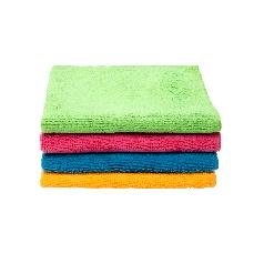 Set of 4 cleaning cloths made of soft microfiber, measuring used to clean dust and dirt from various surfaces.