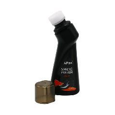A Black liquid shoe polish designed to nourish and protect leather shoes. The product comes with a sponge for easy, mess-free application. Designed for use on leather shoes to restore their color and shine.