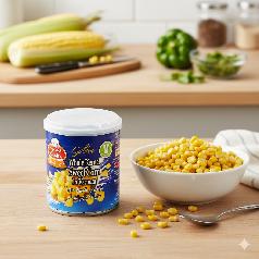 Distinctive and delicious sweet corn, canned to preserve its texture and delicious taste, ideal to eat as a snack, or with salad, pizza, or sandwiches.