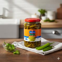 قطع فلفل رفيعة وحارة محفوظة بعناية في محلول خل متوازن، تمنحك نكهة حامضة مع قرمشة لذيذة في كل قضمة مثالي لإضافة طعم مميز وسريع لأي وجبة أو ساندويش، ويضيف لمسة من الحيوية على سفرتك.