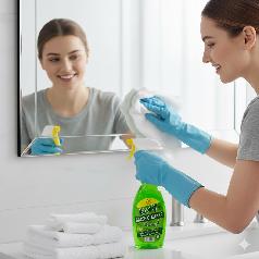 A glass cleaner that gives your glass a clear shine without any residue. Its light formula cleans quickly and easily removes dust and stains. Ideal for windows, mirrors, and glass screens, it leaves the place sparkling clean and fresh.