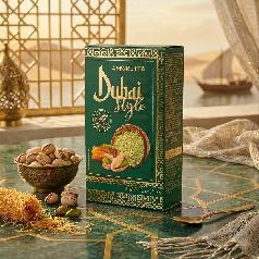 The outer layer consists of chocolate, filled with pistachios and kunafa, offering you the authentic taste of the famous Dubai chocolate.