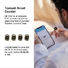 This premium quality electronic Tasbih is exceptionally easy to use and allows you to track your Zikir count along with prayer times directly through the device. It comes with its own dedicated charger and a battery life that lasts for 3 days, plus it can be connected to your phone via a specialized app that you can find and download by scanning the QR code on the back of the packaging.