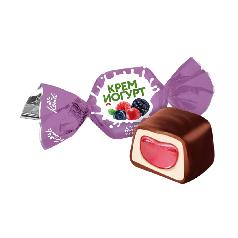 This candy consists of three layers, the outer layer is coated in chocolate, while the inside is a blend of white cream and berry-flavored cream.