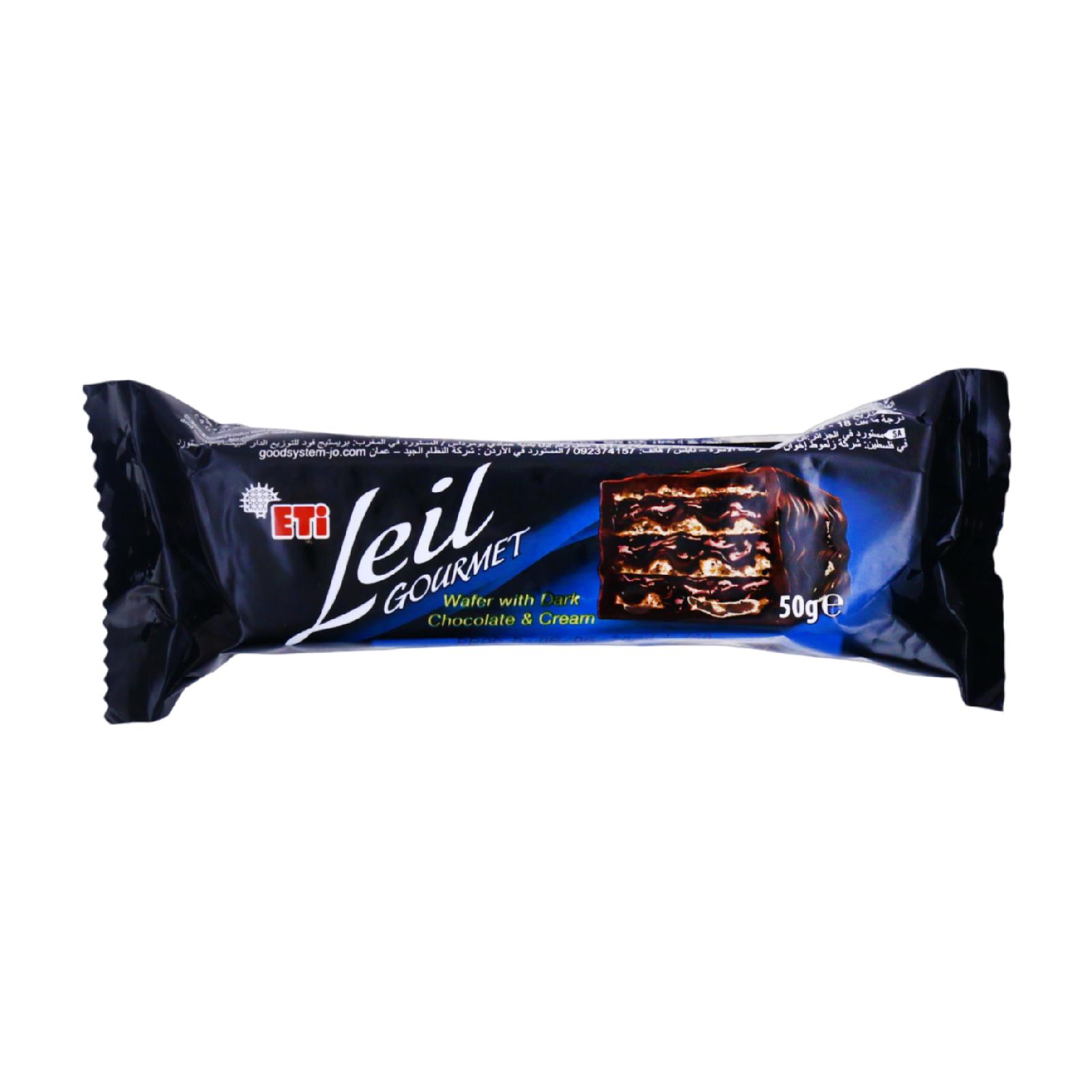 بسكويت مكون من 3 طبقات محشو بكريمة الشكولاتة بالحليب ومغطى بالشكولاتة الداكنة .