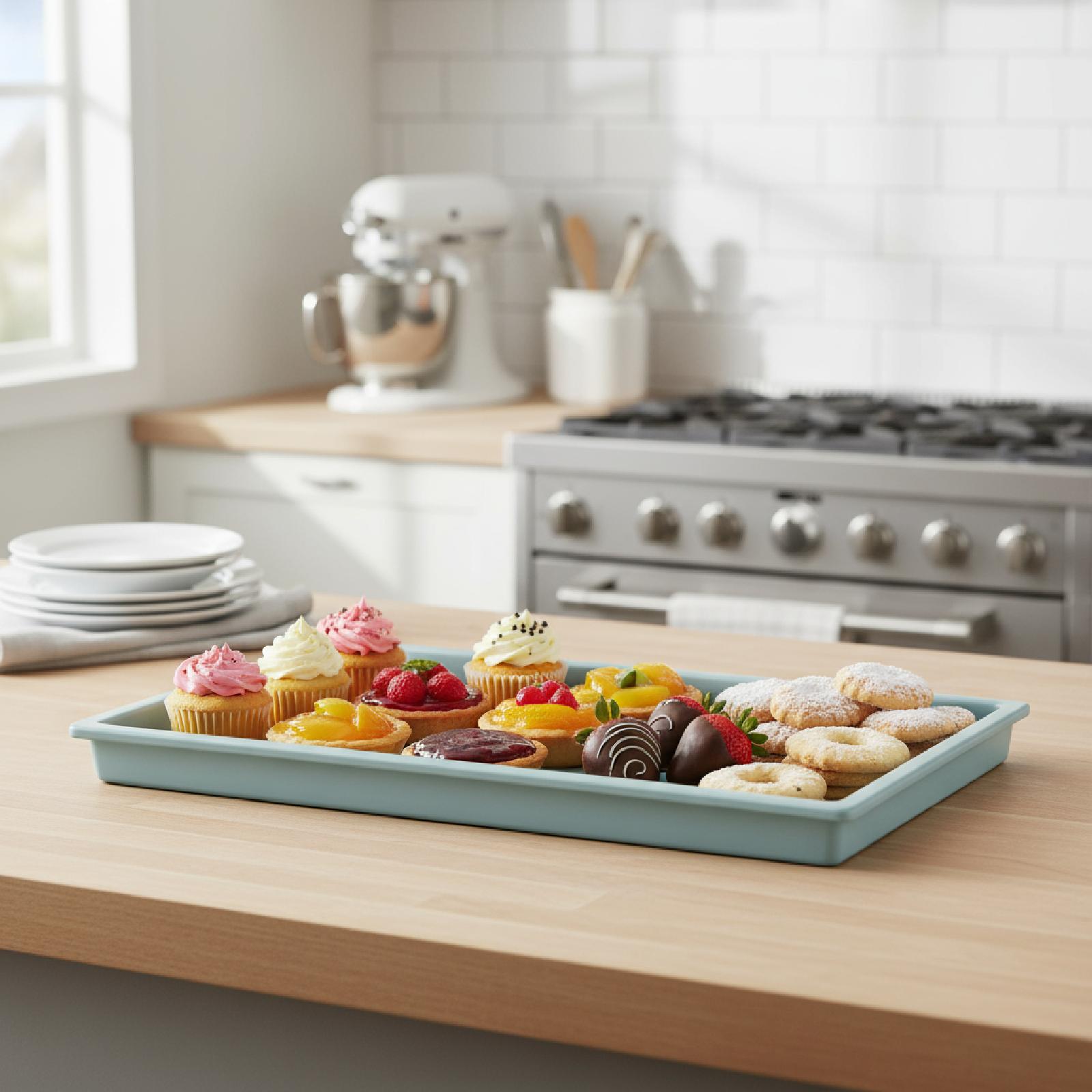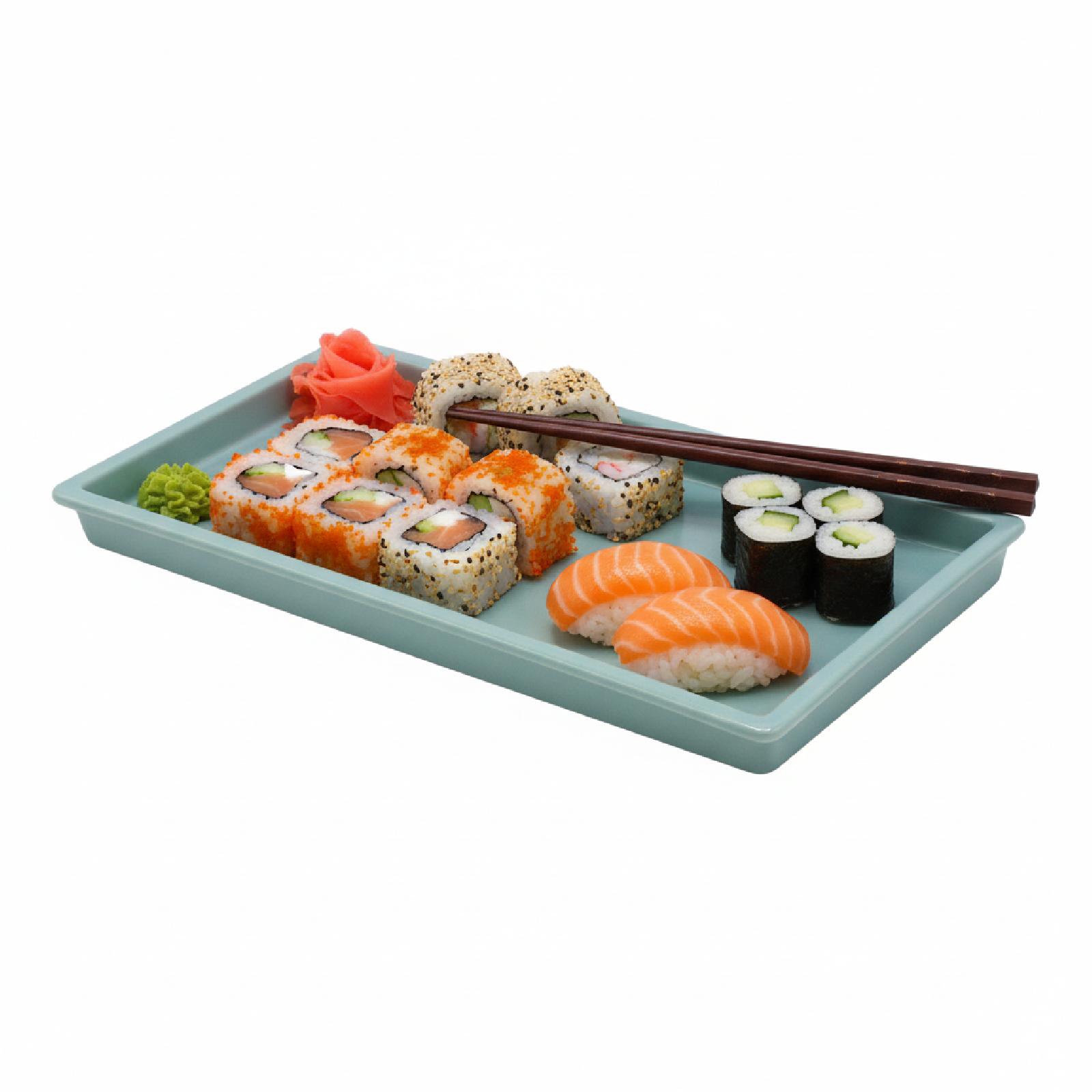 A distinctive and beautiful rectangular plate. It is large in size and can hold many types of fruits, sweets, and various other foods. It is of excellent quality.