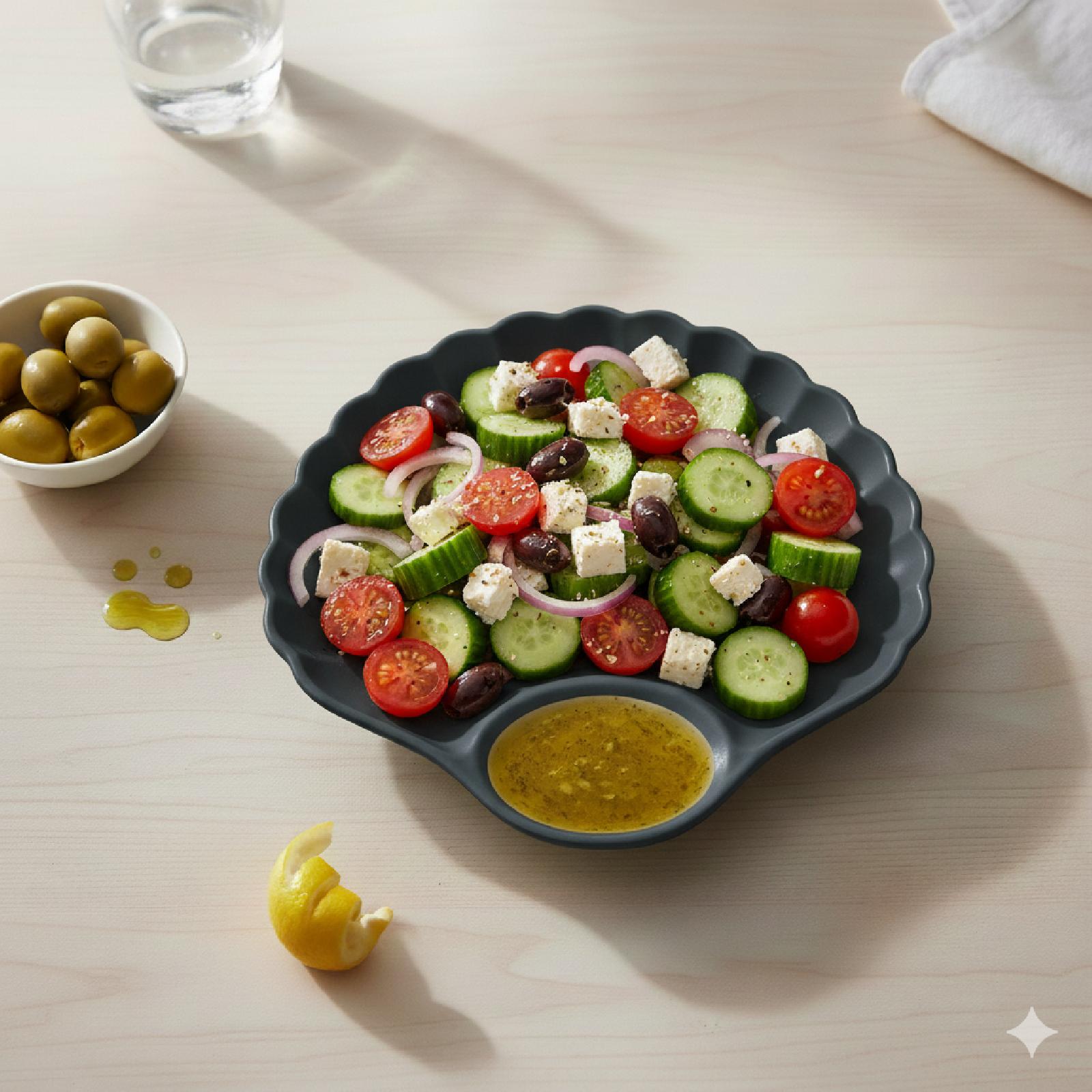 طبق تقديم رقائق البطاطس مع مكان خاص بالصلصة ممكن ان يكون طبق مقبلات ايضا آمن للاستخدام في الميكروويف وغسالة الأطباق فهو مثالي لتقديم الوجبات الخفيفة والمقبلات.