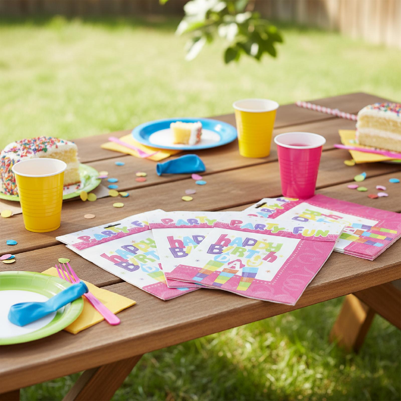 2-ply birthday party paper napkins are perfect for birthday parties. Add a touch of fun and color to your table.