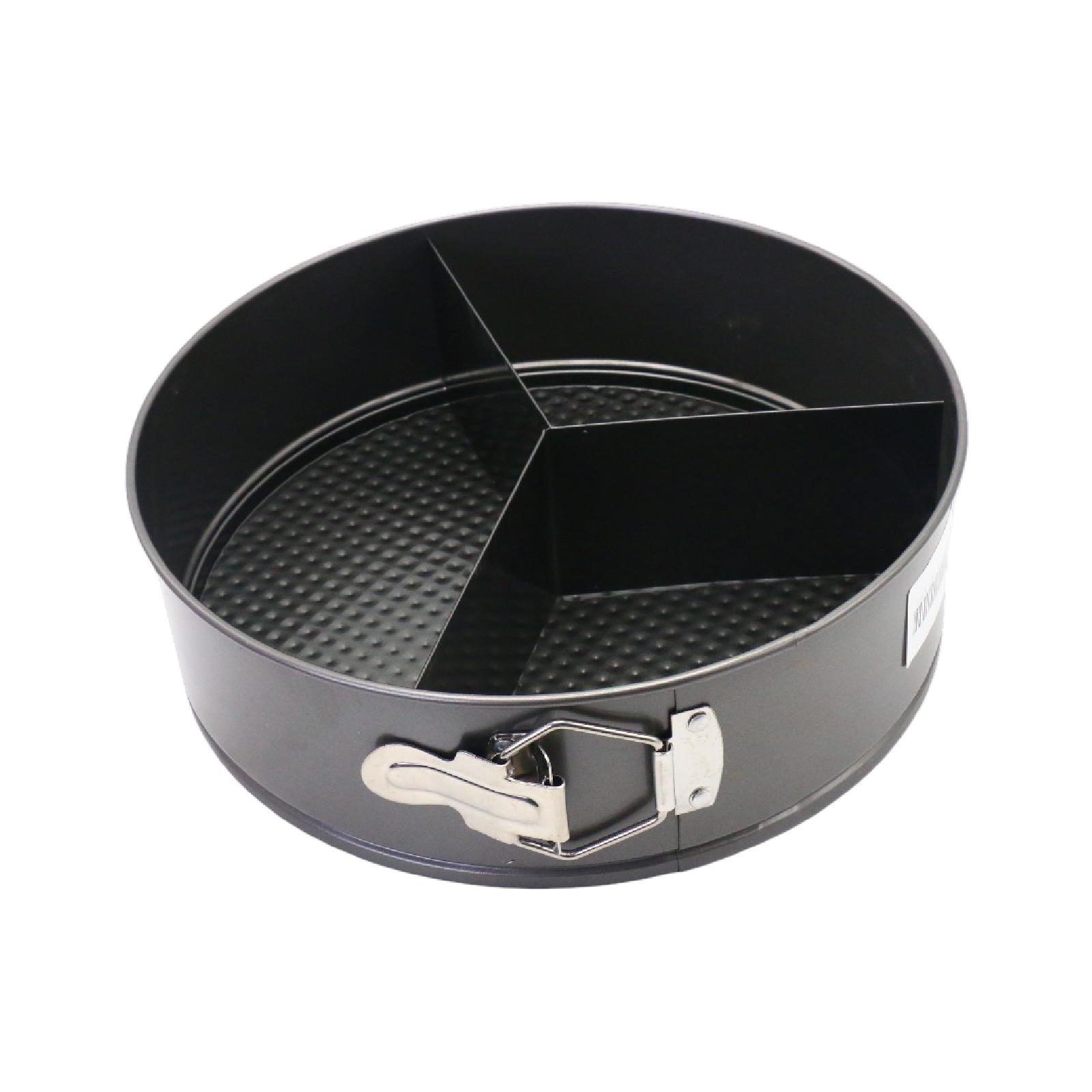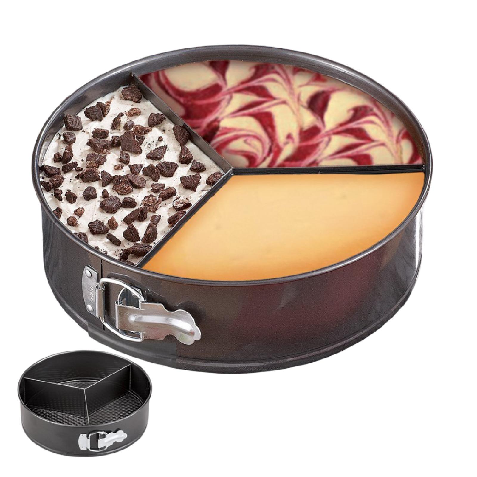 Cheesecake pan made of strong and durable steel, perfect for cheesecakes, pies and more.It contains a triangular mold for cutting the cake inside the mold.