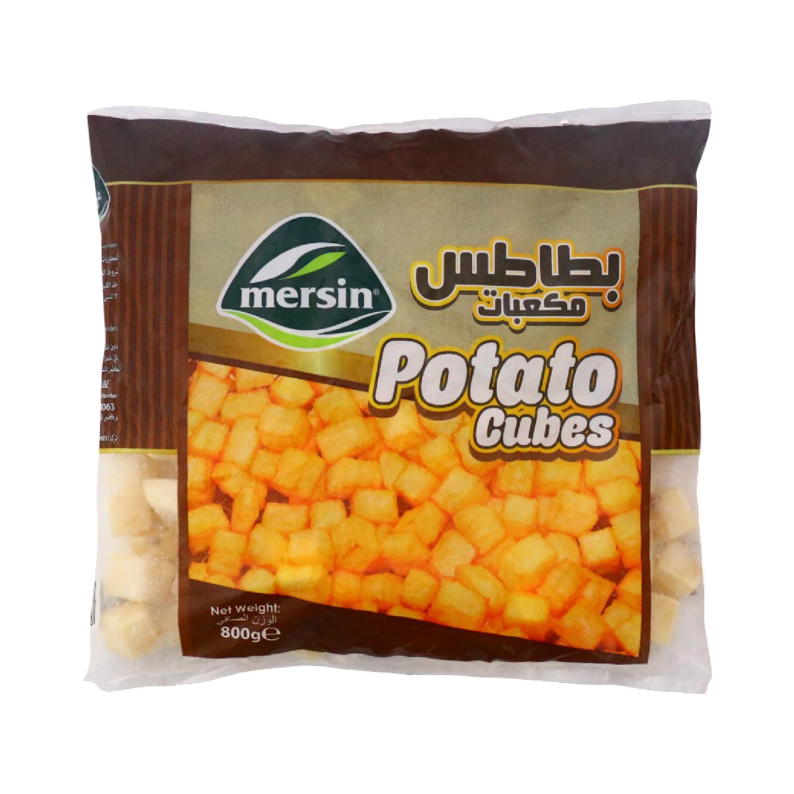 پەتاتەی پارچەکراوە بە شێوەی چوارگۆشە، کوڵاو و ئامادەیە بۆ خواردن یان دانانی لەناو خواردندا.