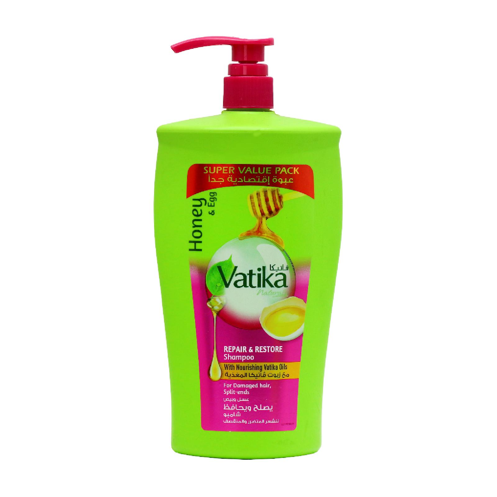 Egg and honey shampoo repairs and maintains damaged and split hair, formulated with nourishing Vatika oils.