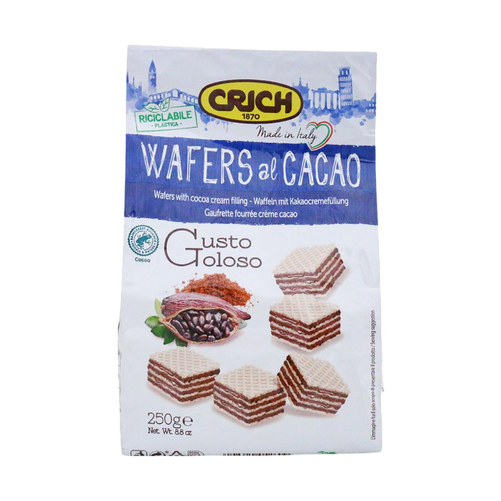 Crispy wafers with light layers, filled with a soft and refreshing cocoa cream that combines a delicious crunch with the bitter and sweet taste of cocoa at the same time.