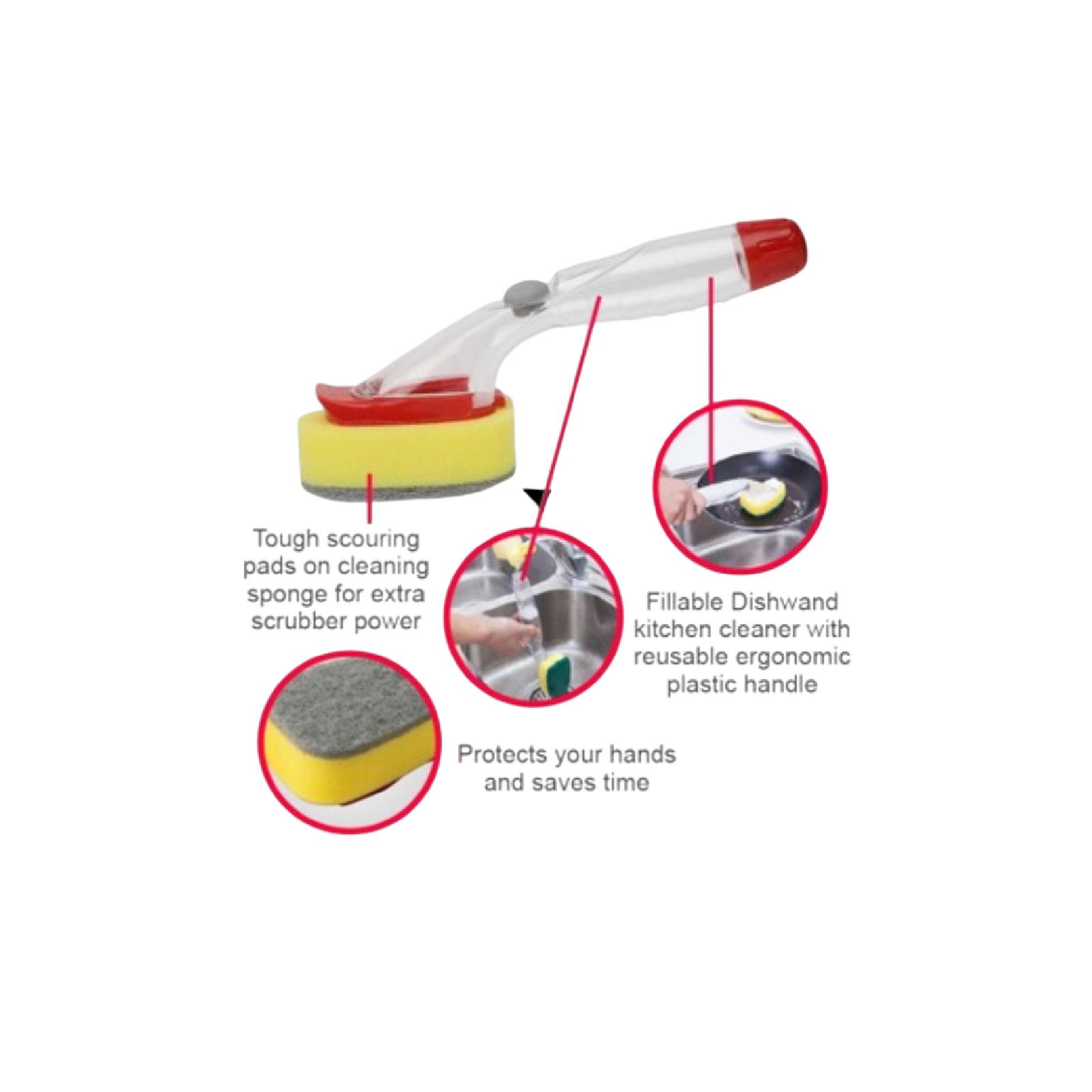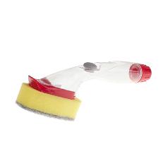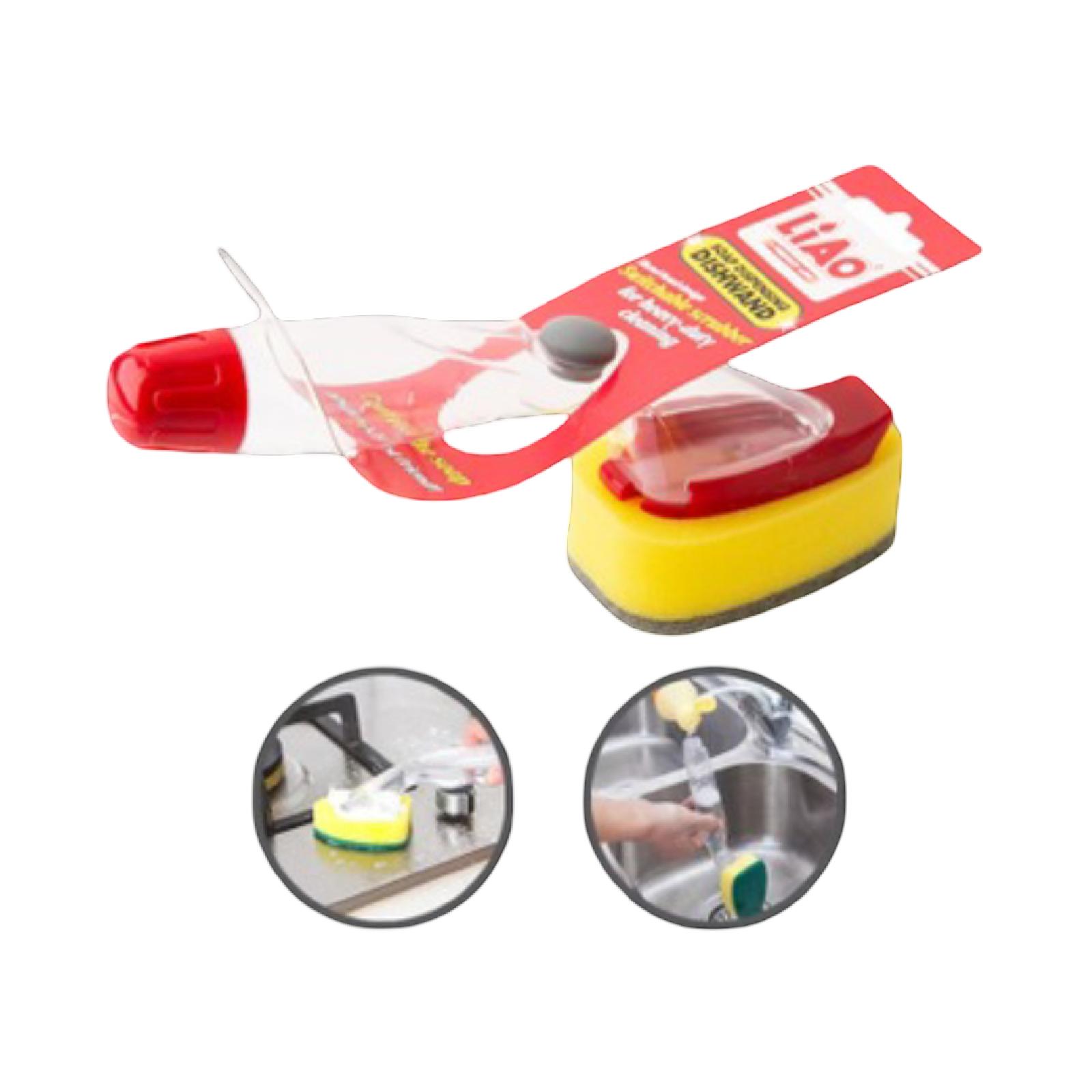 A dishwashing sponge made of antibacterial material, with a dishwashing liquid container, used to remove dirt and grease from dishes and utensils.