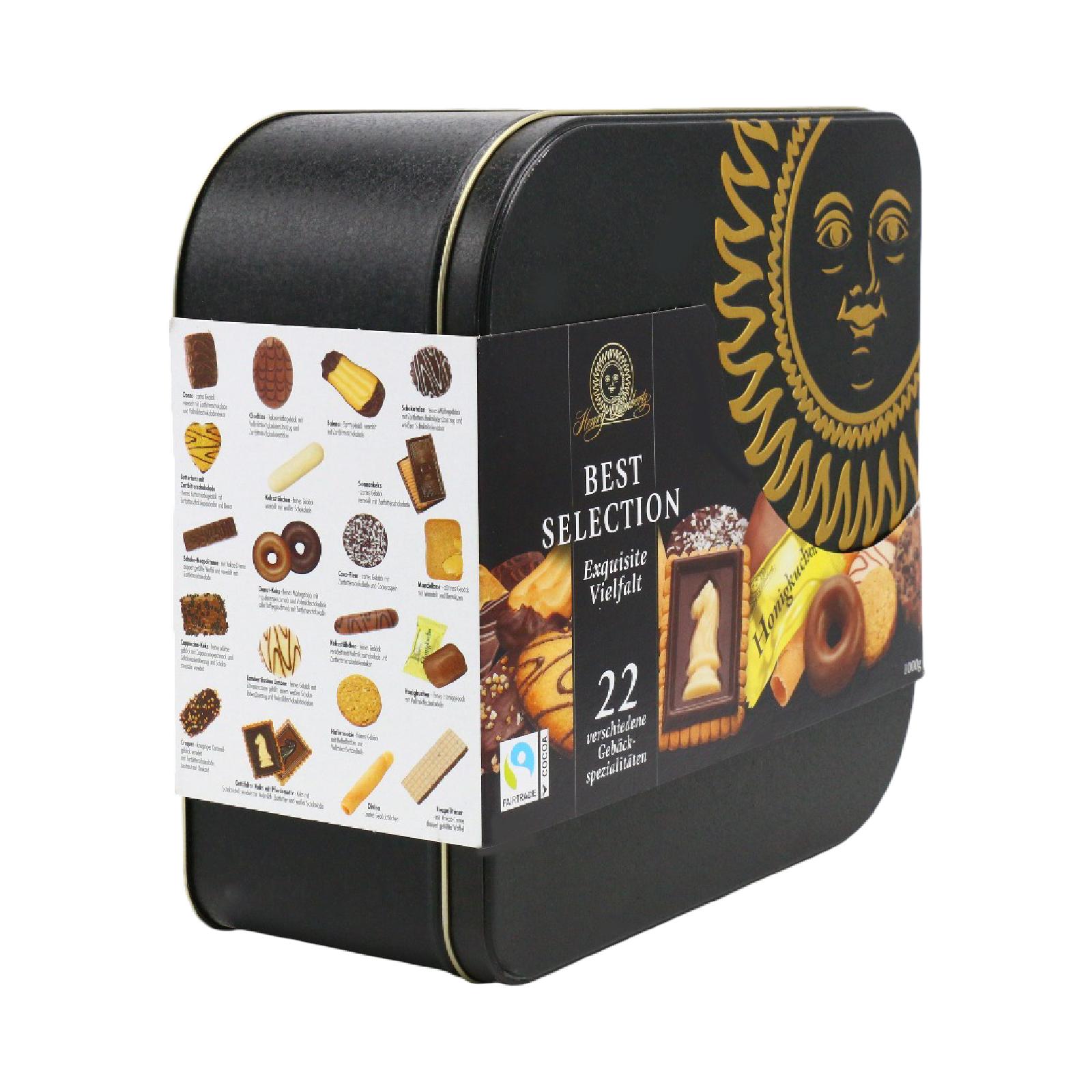 This diverse, unique and delicious assortment contains a mix of cookies, chocolates, biscuits and wafers, ideal for serving to guests or as a gift.