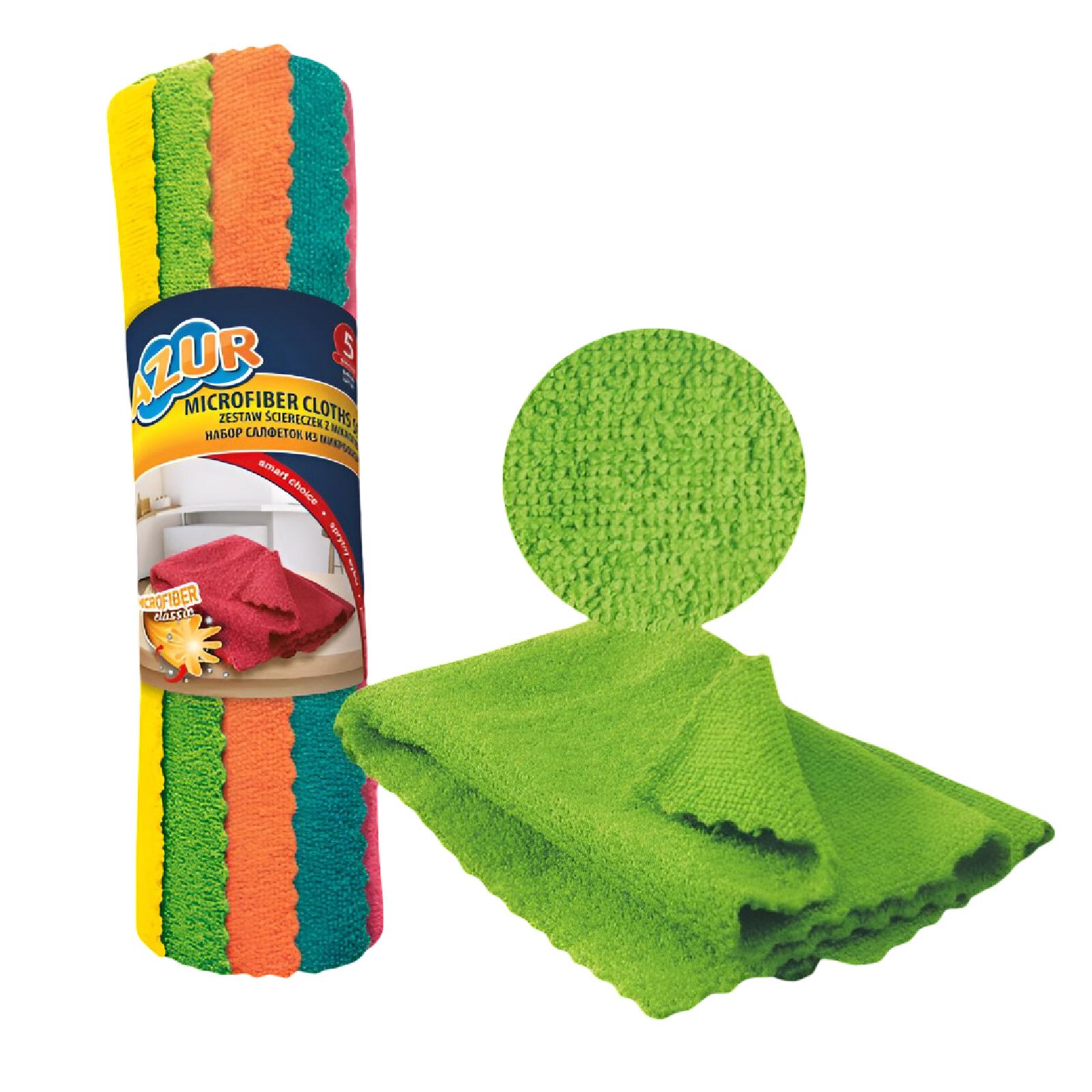 Set of 5 cleaning cloths made of soft microfiber, measuring used to clean dust and dirt from various surfaces. size 30*30cm