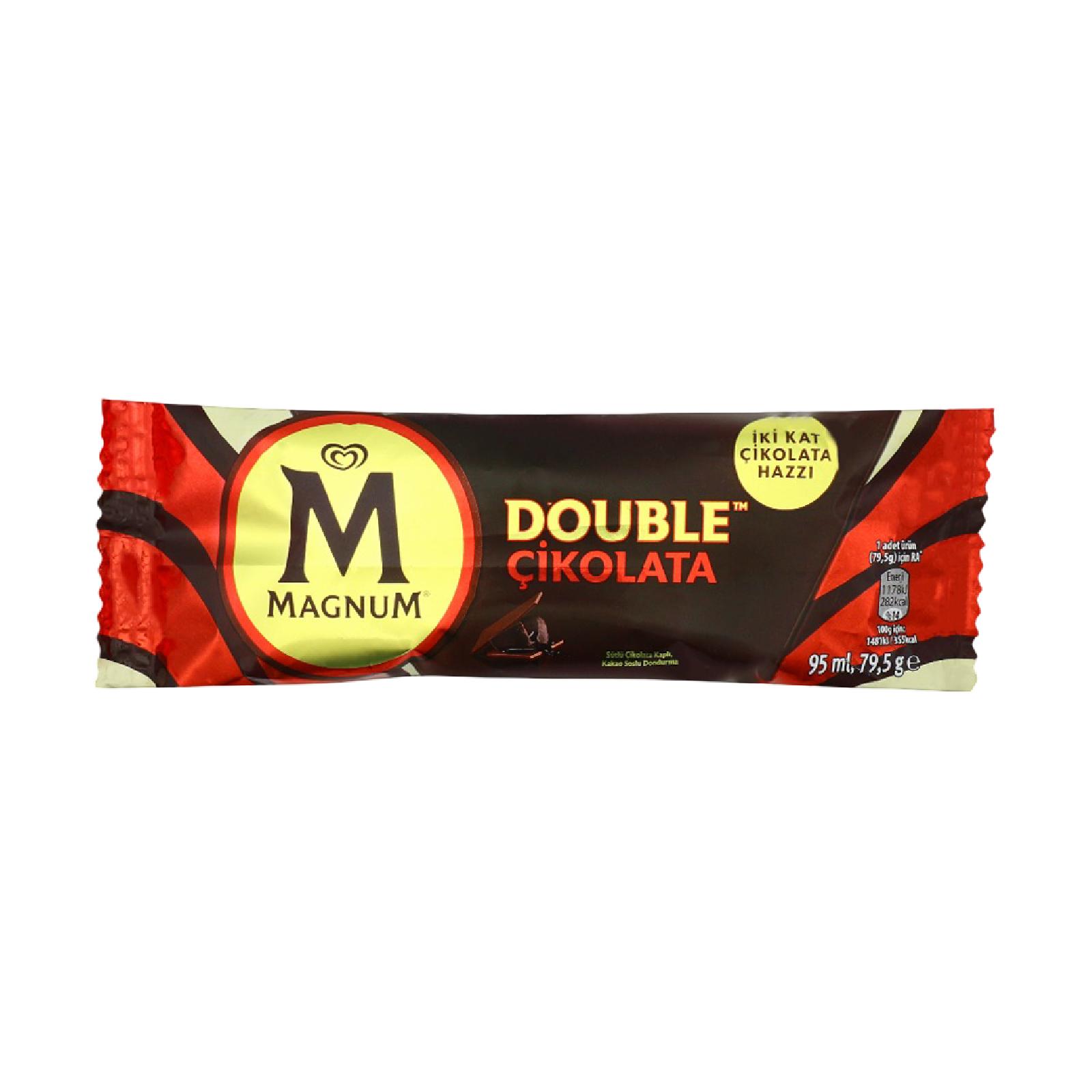 مثلجات دبل شوكولاتة غنية بالنكهة مغموس في صلصة فادج الشوكولاتة الناعمة، ومغطى مرة أخرى بطبقة من شوكولاتة الحليب لذيذة ومميزة.