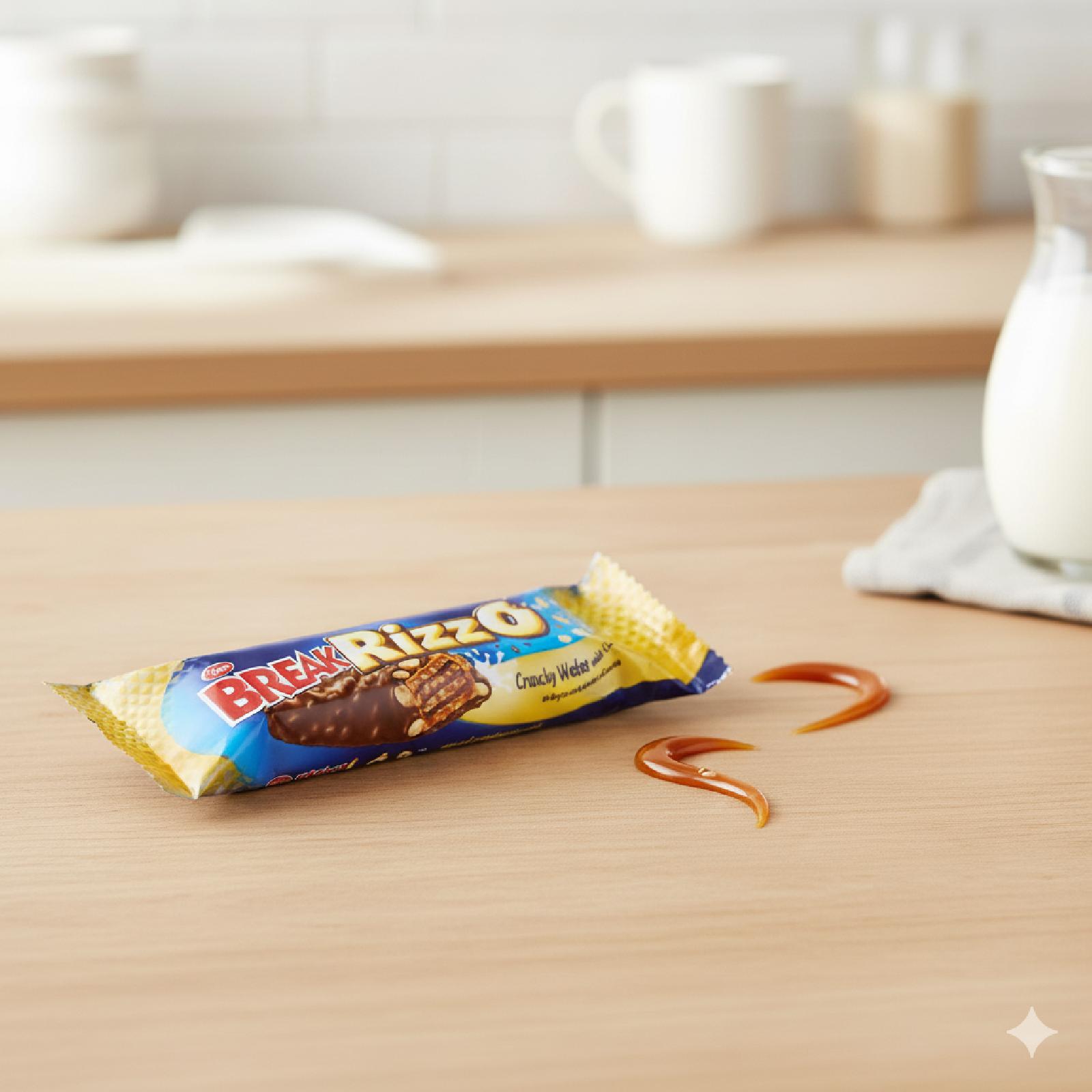 ويفر مقرمش لذيذ ومميز جدا مكون من عدة طبقات محشوة بالكاكاو والكراميل ومغطى بشكولاتة الحليب وقطع من فستق الفول السوداني .