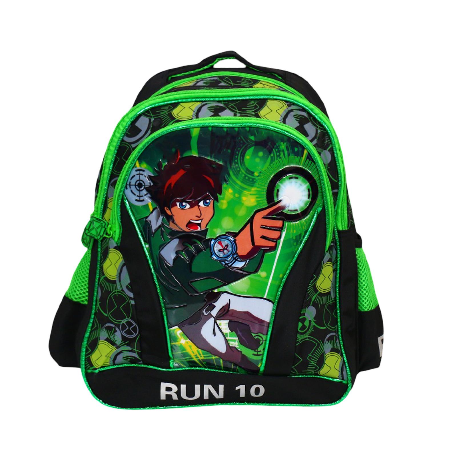 Ben 10 Bag This bag is for your child who loves all the Ben 10 characters. It has three compartments for storing school supplies, such as notebooks, books, and other necessities, with side pockets for water.