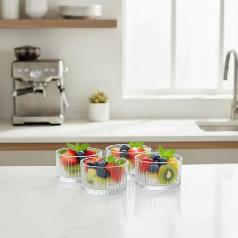 صحون زجاجية صغيرة زجاجية مميزة وذو جودة عالية متعددة الاستخدامات يمكنك استخدامها للكرزات او الفواكه او انواع الحلويات الاخرى .