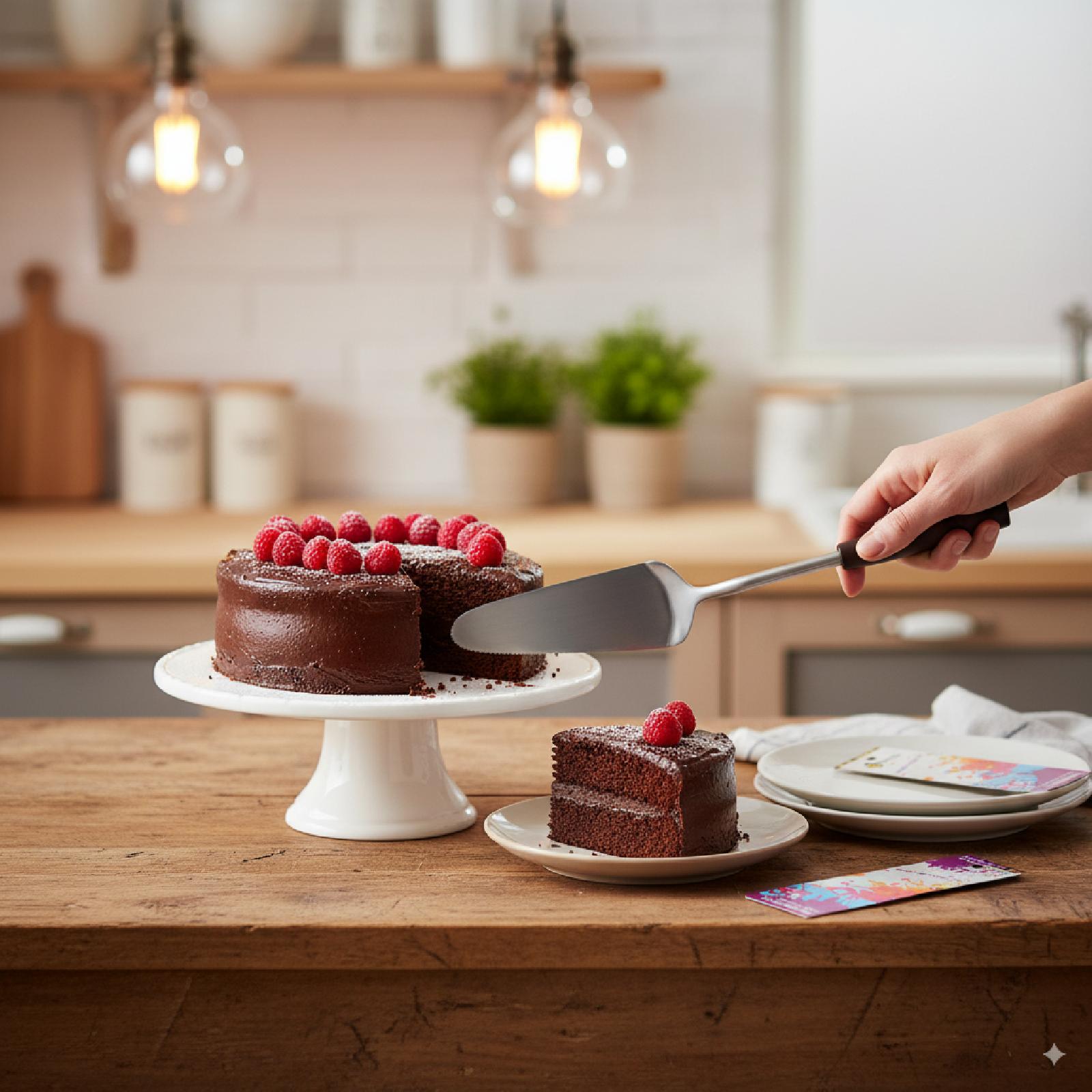 مجرفة كيك بمقبض مريح ووظائف متعددة مثالي لتقطيع وحمل جميع أنواع الكيك بما في ذلك الكعك ذي الطبقات والمتدرج.