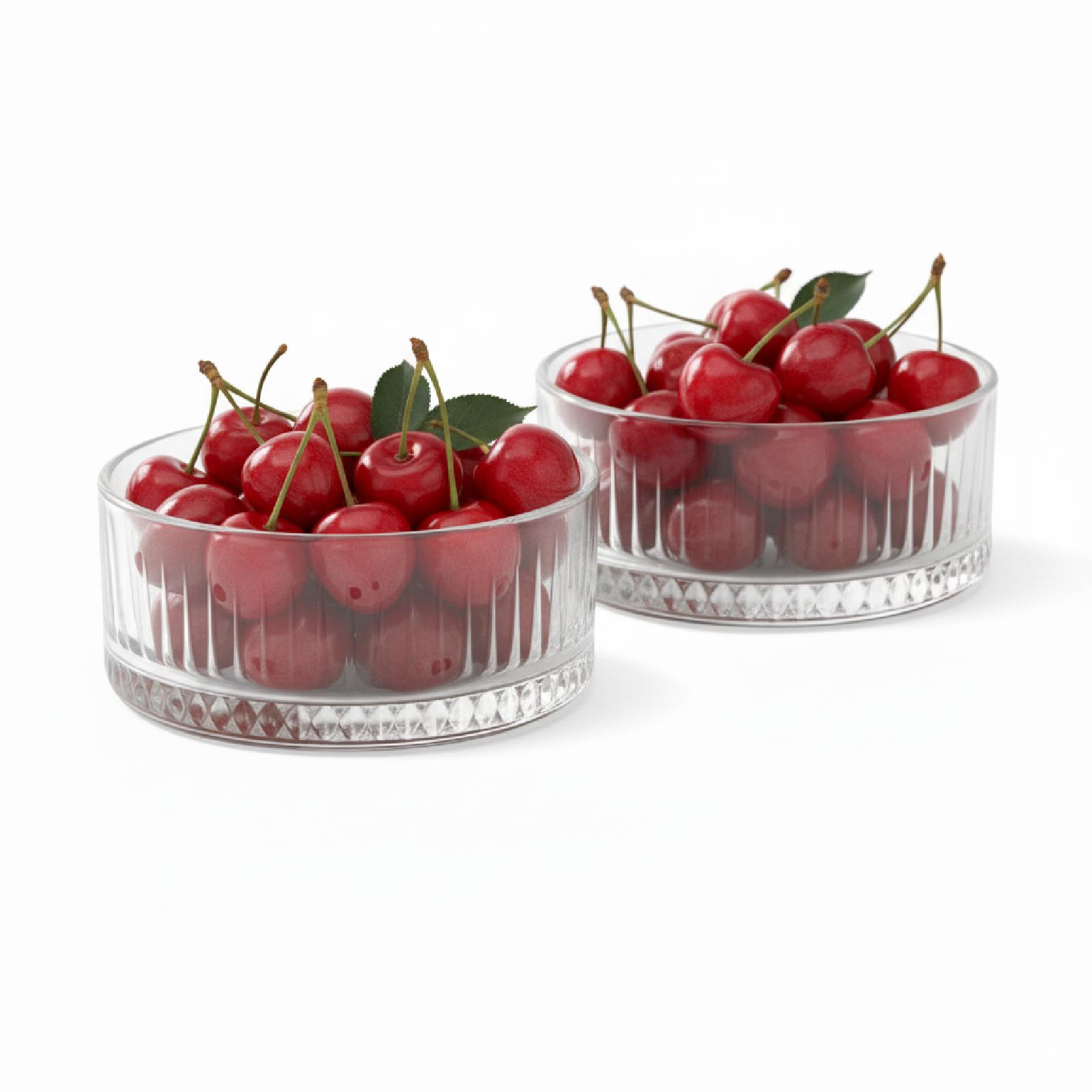 صحون زجاجية مميزة وذو جودة عالية متعددة الاستخدامات يمكنك استخدامها للكرزات او الفواكه او انواع الحلويات الاخرى .