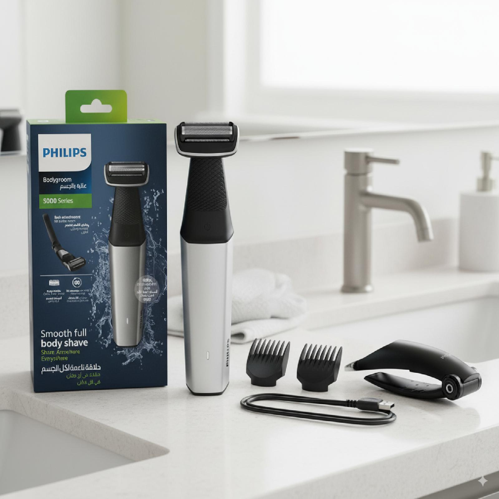 ماكينة حلاقة فيليبس مقاومة للماء تساعدك ازالة الشعر بأمان وفعالية يمكنك استخدام لاسلكي لمدة 60 دقيقة لشحن سريع لمدة ساعة تحتزي على ثلاث امشطة باحجام مختلفة .