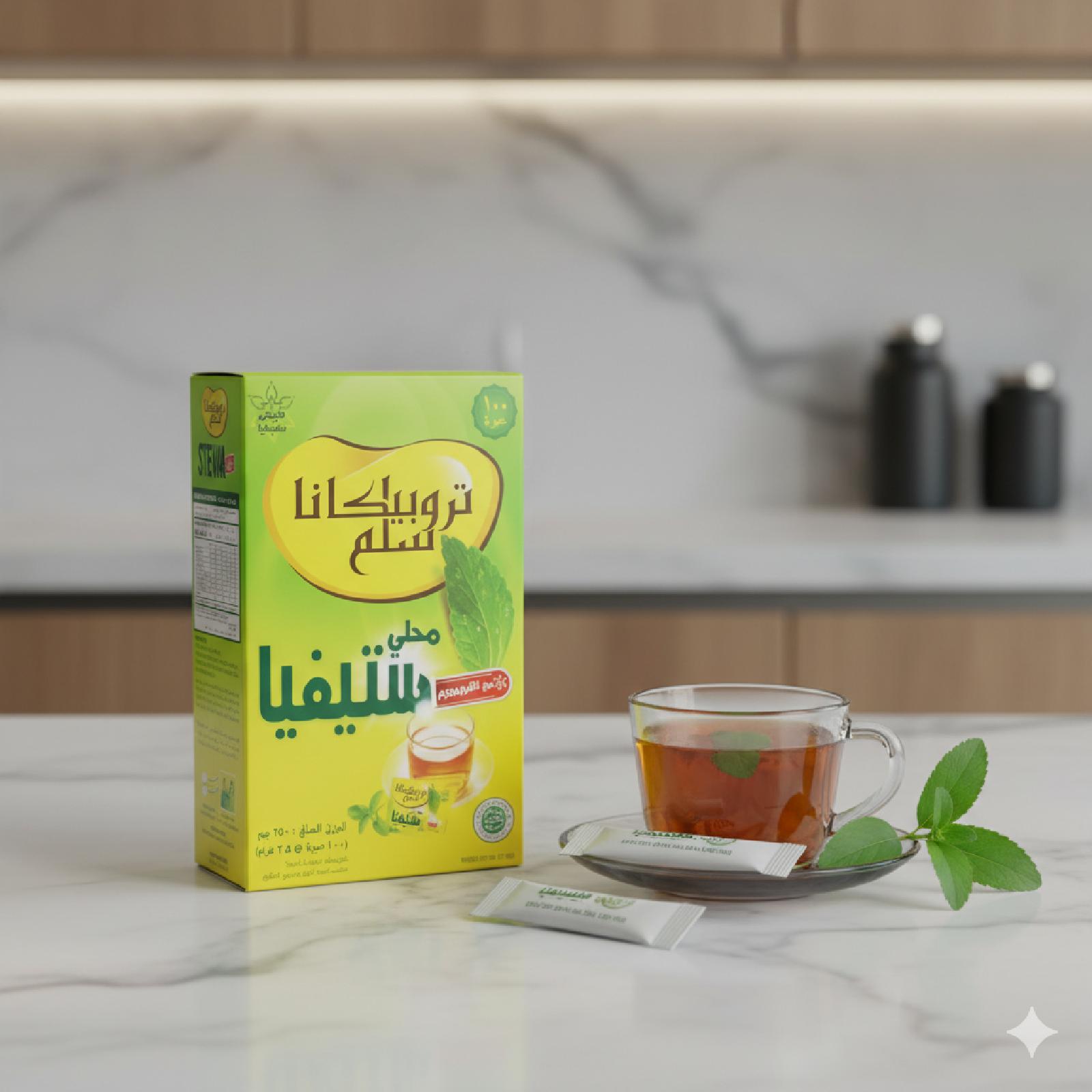 محلى ستيفيا سلم مكون من خلاصة اوراق نبتة ستيفيا كمحلى طبيعي يستخدمه مرضى السكري واصحاب الريجيم لقلة سعراته الحرارية وفائدته مناسب للمشروبات الساخنة والباردة وصنع الحلويات حيث يعتبر خالي من السكر وحلو المذاق.