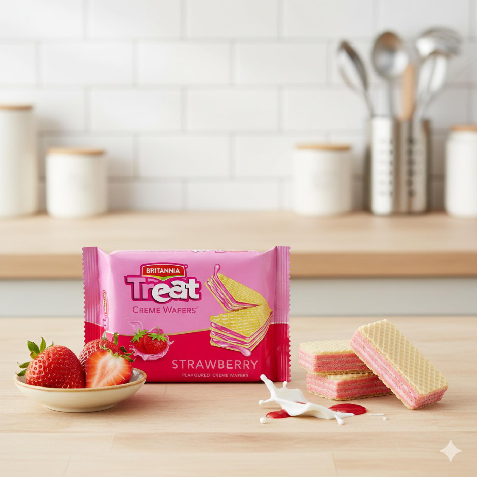 ويفر مميز لذيذ ومتتع مكون من عدة طبقات محشوة بكريمة الفراولة ممتع مع كوب شاي اوقهوة .