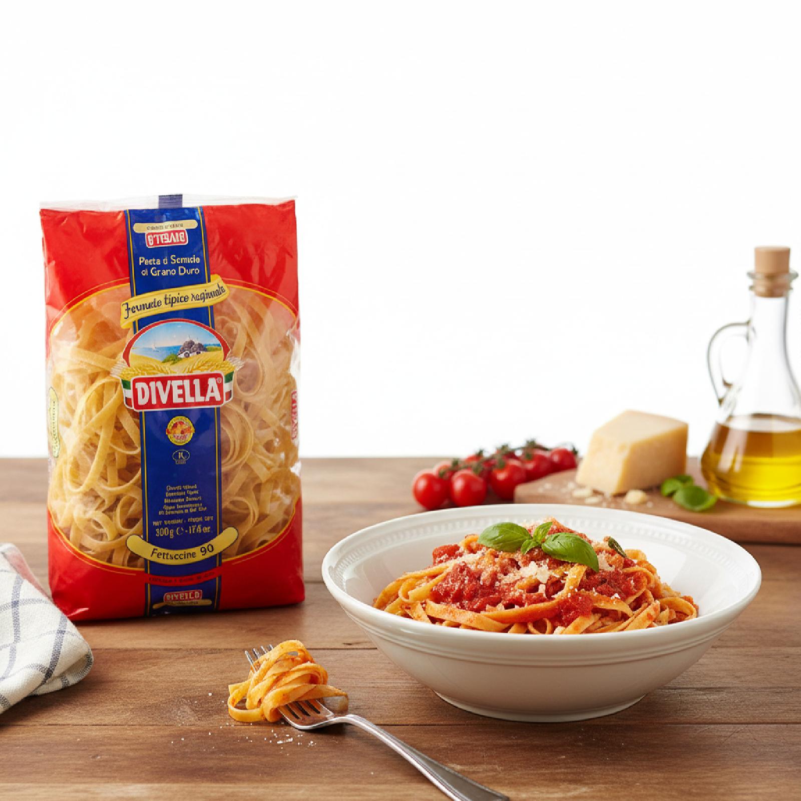 Pasta made from semolina only, it is closer to traditional pasta, which makes it suitable for vegetarians. You can serve it with many sauces, or with seafood, meatballs, or chicken slices. It is delicious and very special.