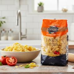 Traditional Italian fettuccine pasta made from wheat semolina, perfect with creamy sauces, meat, seafood, or vegetable toppings.