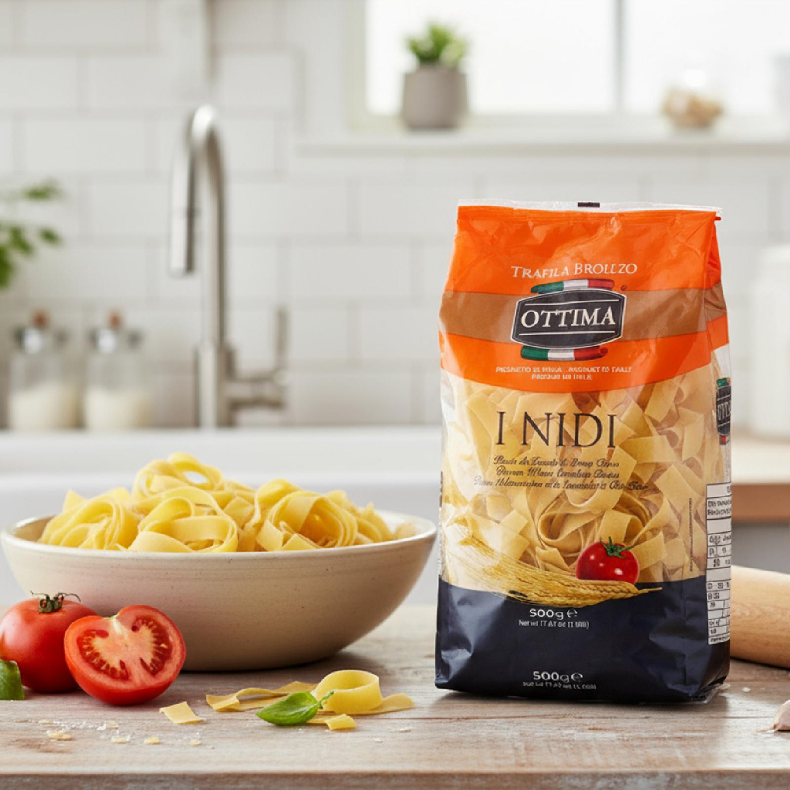 معكرونة فيتوتشيني إيطالية تقليدية مصنوعة من سميد القمح مثالية مع الصلصات الكريمية أو اللحوم او الماكولات البحرية أو إضافات الخضار.