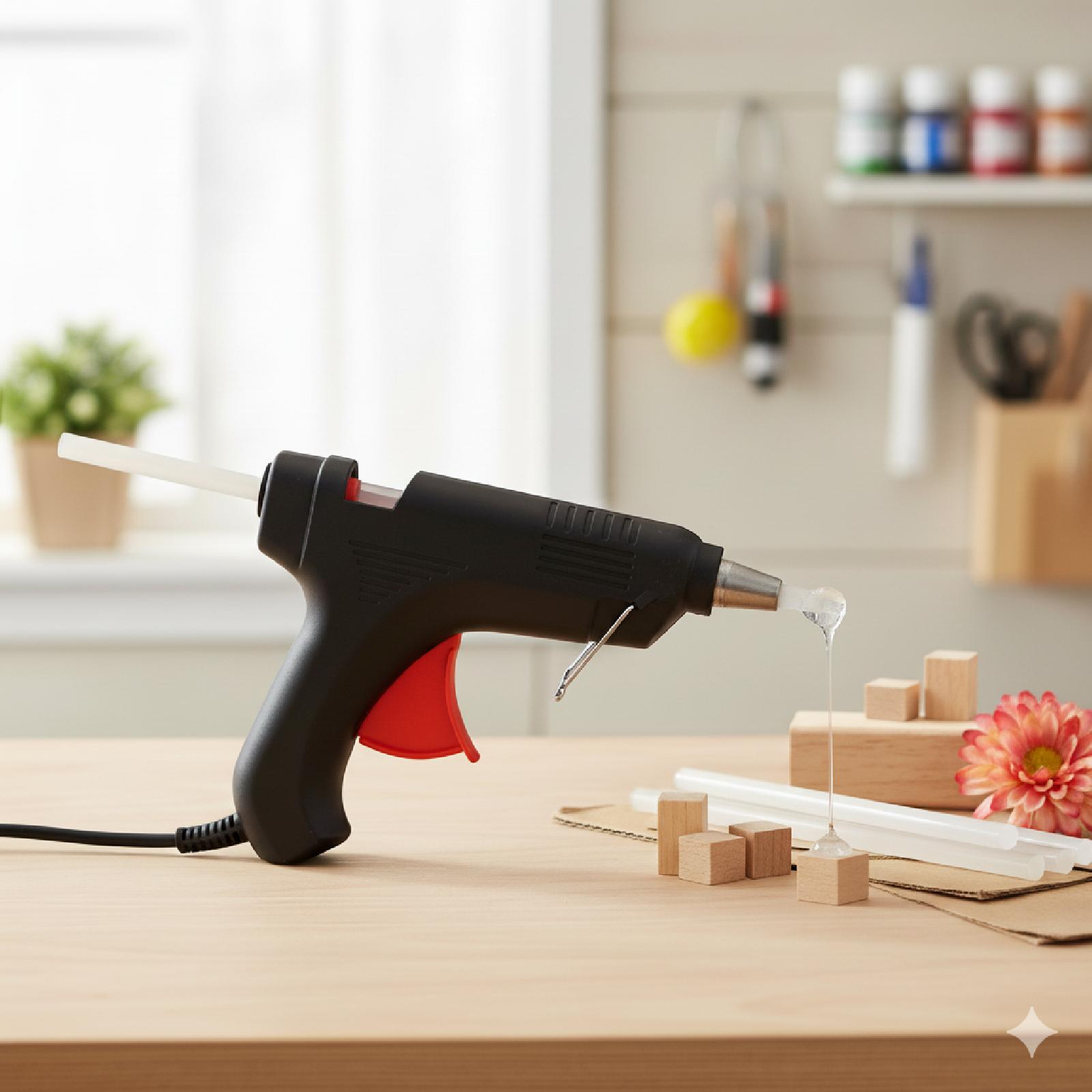 مسدس غراء يستخدم في أعمال الصيانة والإصلاح المنزلية العامة، وهو أداة أساسية، خاصةً للحرف اليدوية الصغيرة.