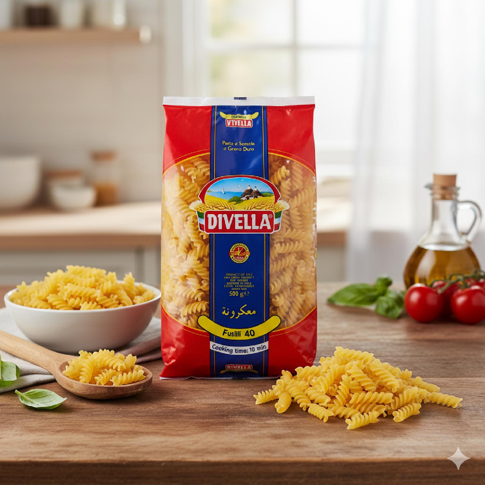 معكرونة ملتوية لذيذة تُطهى حتى تصبح طرية تمتزج بصلصة غنية تضيف نكهة مميزة، وتُقدَّم بشكل شهي.