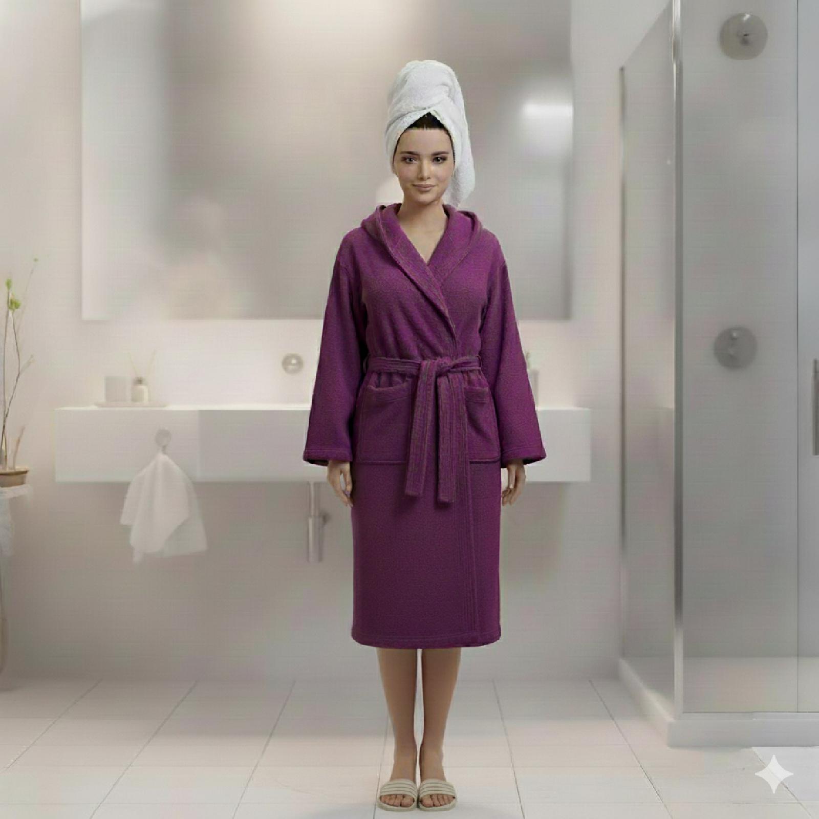 روب حمام ذو جودة عالية جدًا، قطني يمتص الماء بشكل ممتاز وناعم جدًا للاستخدام ذات لون أنثوي وناعم، وحجمه مناسب للجميع.
