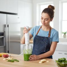 The blender features a simple and elegant white design, making it suitable for any kitchen. The blender provides high-performance power of 400 watts, enabling it to mix and chop ingredients easily and effectively.