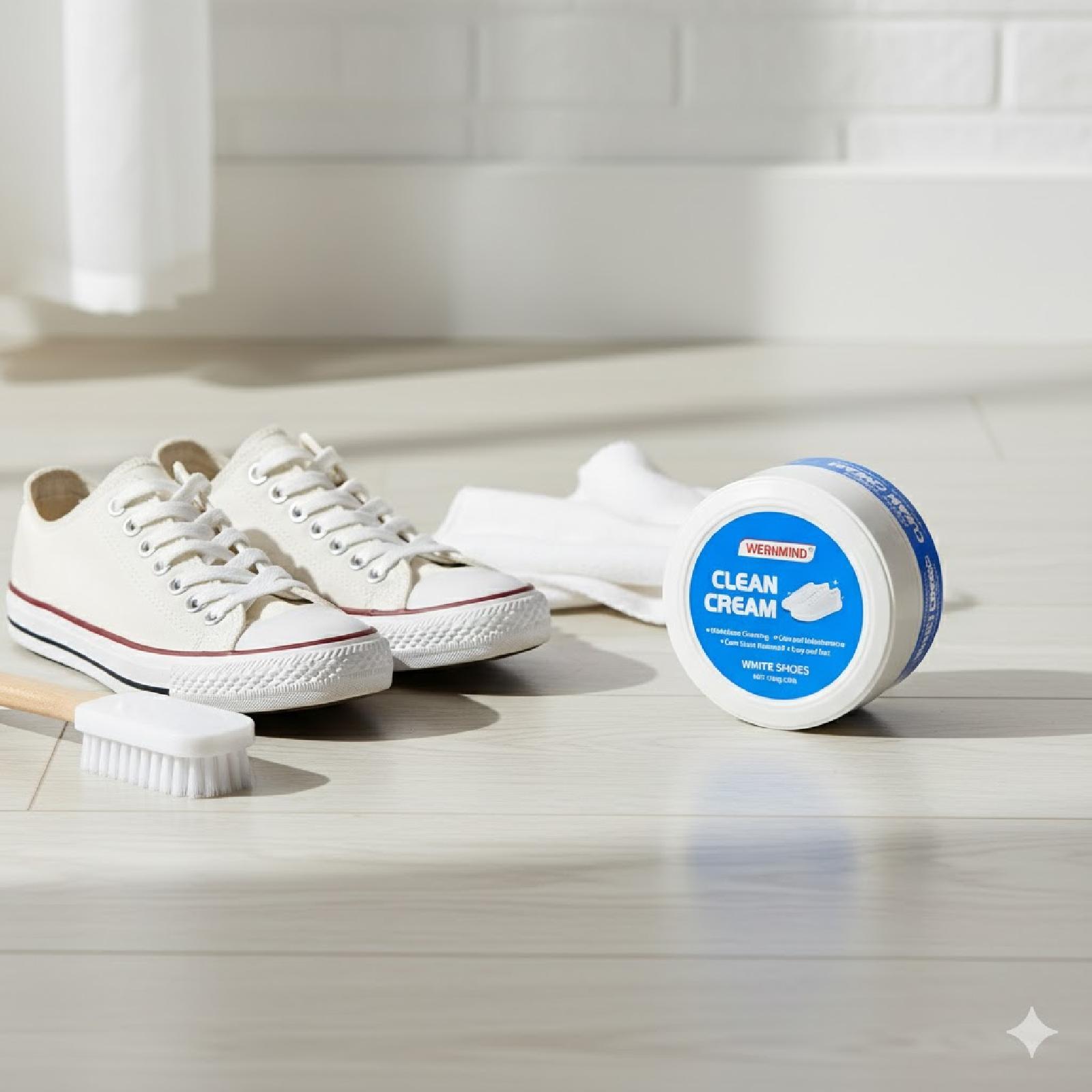 White shoe cleaning cream with a shoe polishing sponge is very special as it removes the toughest stains from white shoes easily and effectively.