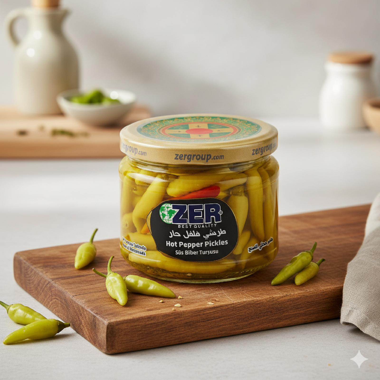 Pickled chili peppers with a perfect taste that combines the natural heat of the peppers with the rich, refreshing flavor of vinegar. Ideal for adding a spicy and distinctive touch to dishes, whether with grills, sandwiches, or as an appetizing side dish.