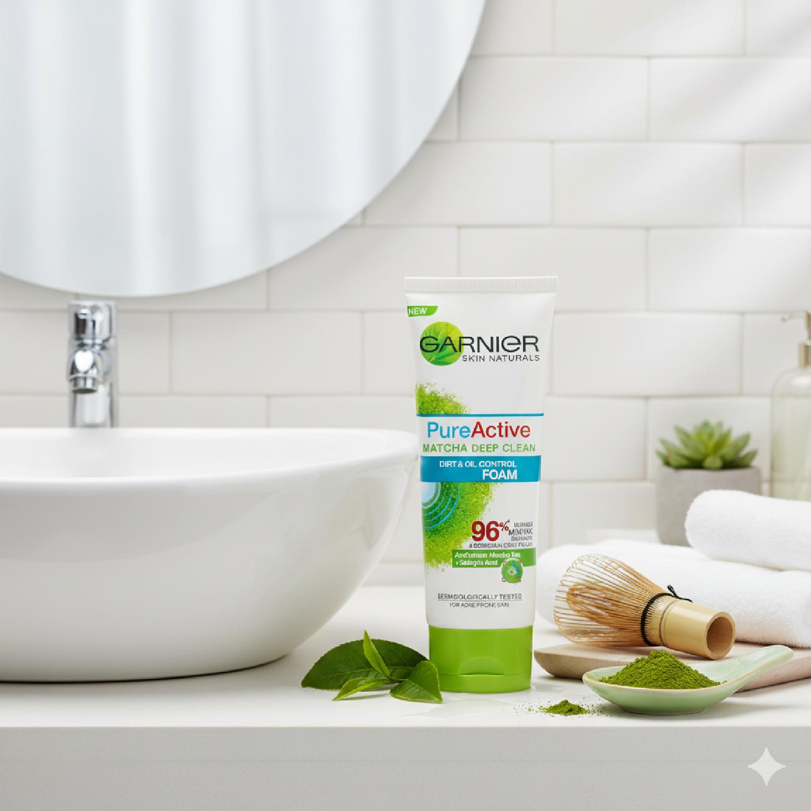 منظف رغوي للتحكم في الأوساخ والزيوت بخلاصة الماتشا المضادة للأكسدة بنسبة 100%، تُذيب الزيوت، وتُفتح البشرة الباهتة، وتُنظف المسام بعمق من الأوساخ وجزيئات التلوث.