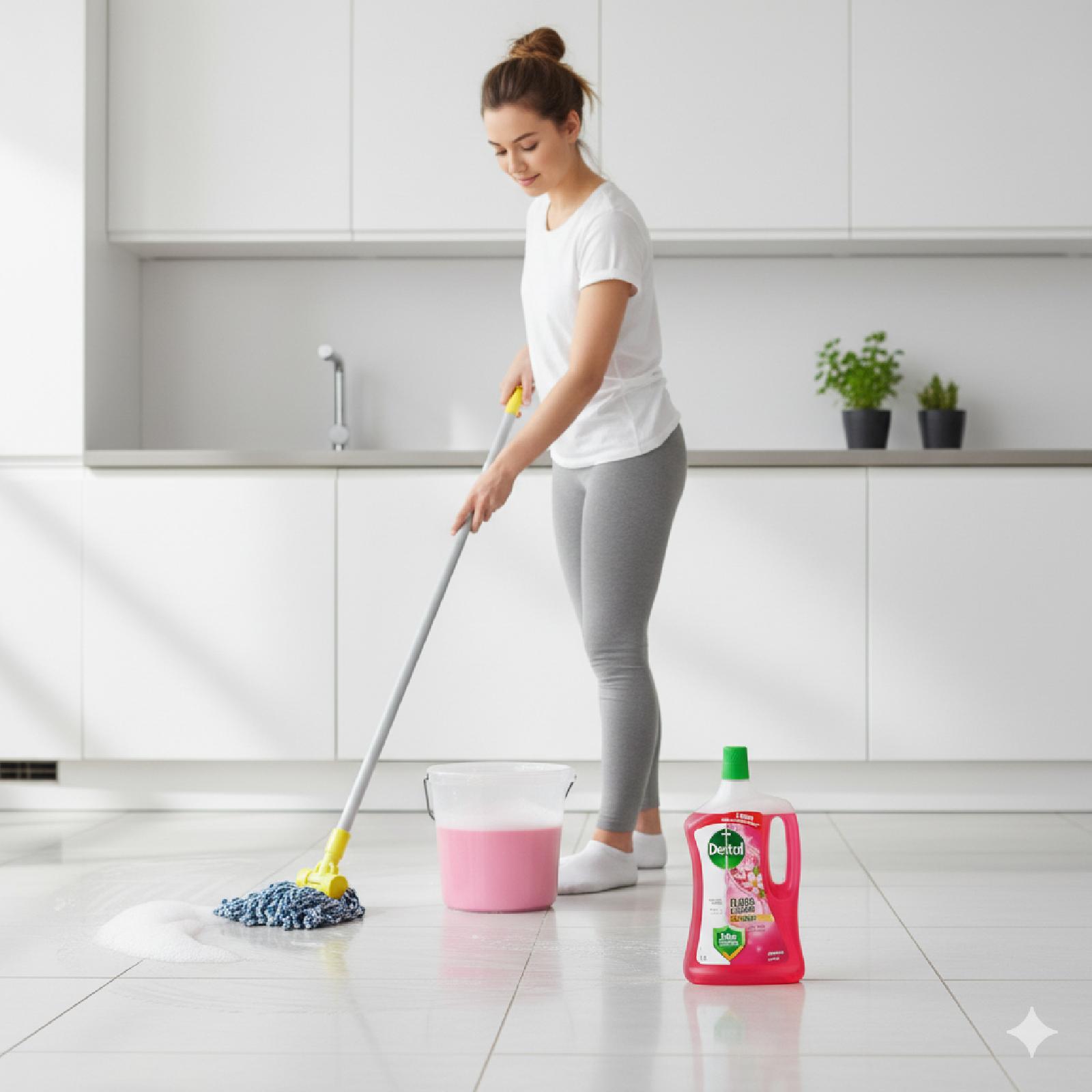 منظف الأرضيات يتميز بقوة مضادة للبكتيريا ويقضي على 99٫9٪ من الجراثيم ضد الاوساخ والغبار ينظف الأرضيات والأسطح الصلبة، بما في ذلك الخشب المُغلق وبلاط البورسلين والمشمع.