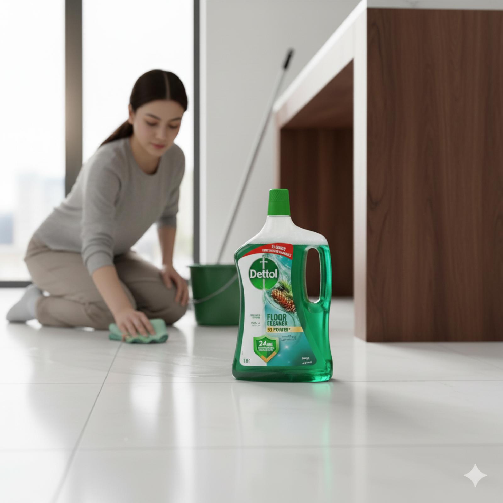 منظف الأرضيات يتميز بقوة مضادة للبكتيريا ويقضي على 99٫9٪ من الجراثيم ضد الاوساخ والغبار ينظف الأرضيات والأسطح الصلبة، بما في ذلك الخشب المُغلق وبلاط البورسلين والمشمع.