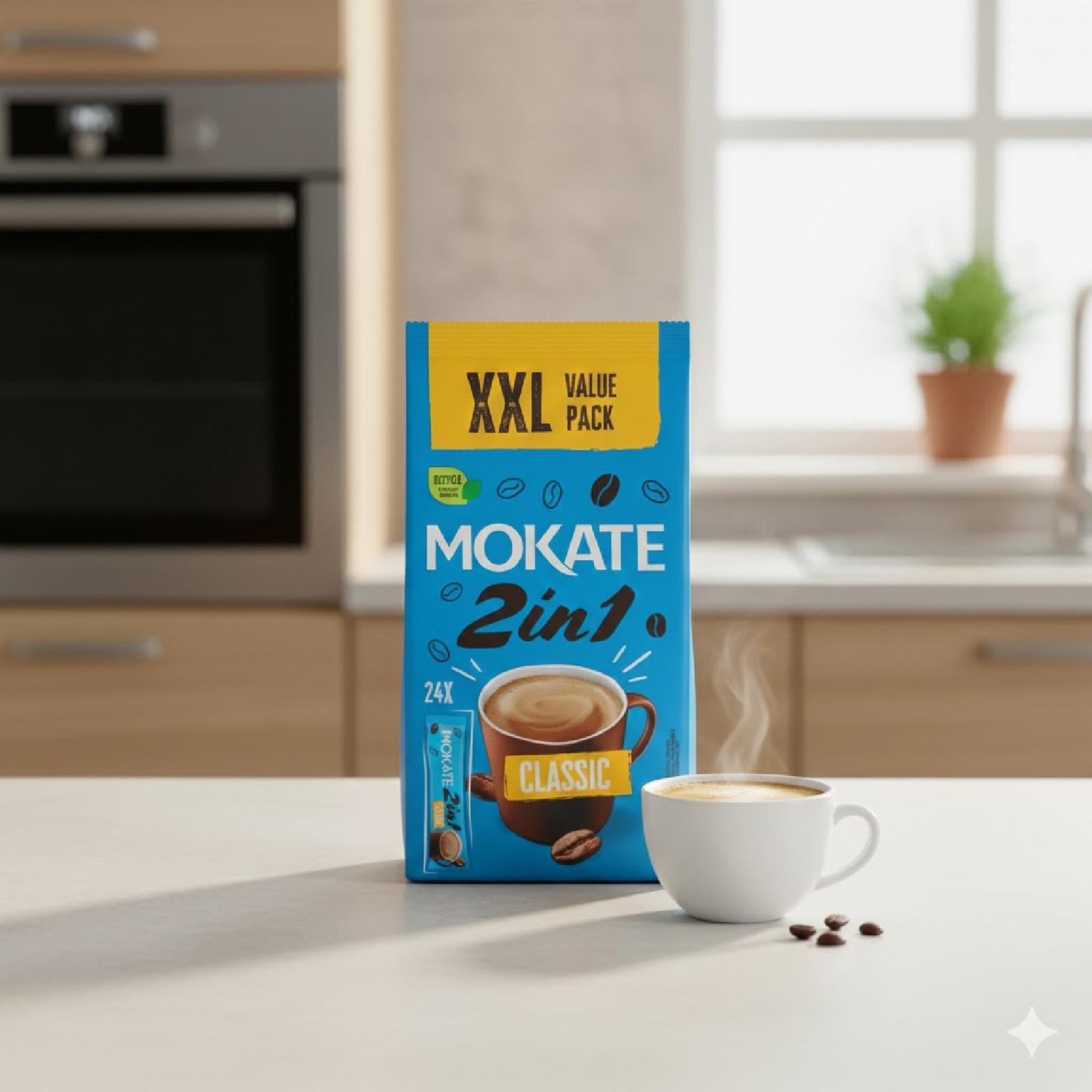 قاوەیەکی خێرایە و کلاسیکە و 2 لە 1 دایە کە ئەم بەرهەمە قاوە و کرێم پێكەوە تێکەڵ دەکات و تامێکی تایبەتت پێدەبەخشێت، تەنها پێویستی بە زیادکردنی ئاوی گەرمە بۆ ئامادەکردن.