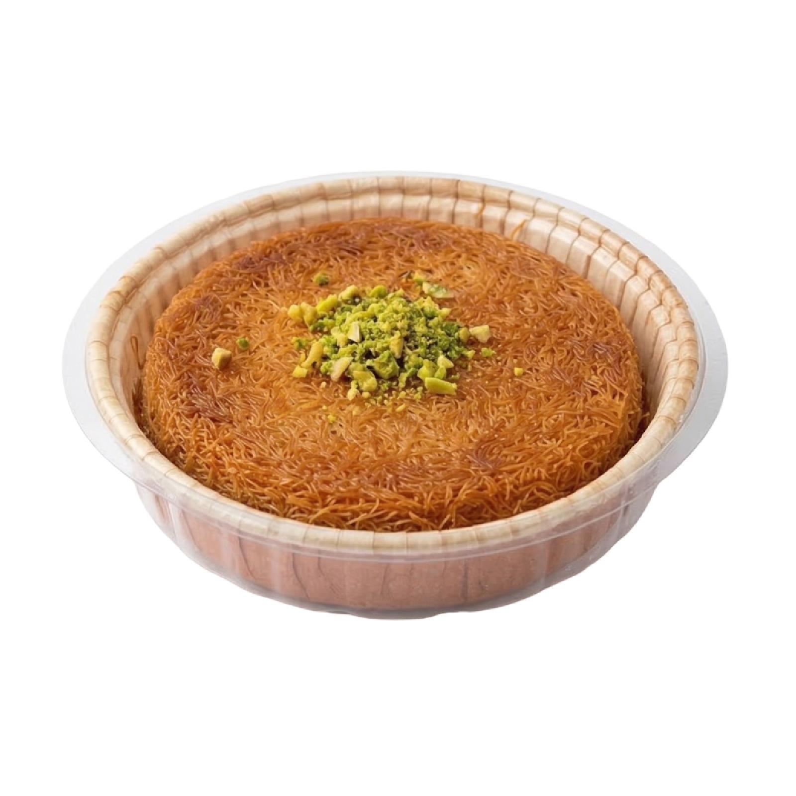 This kunafa is prepared with cheese, offering an authentic taste and an unparalleled flavor.
