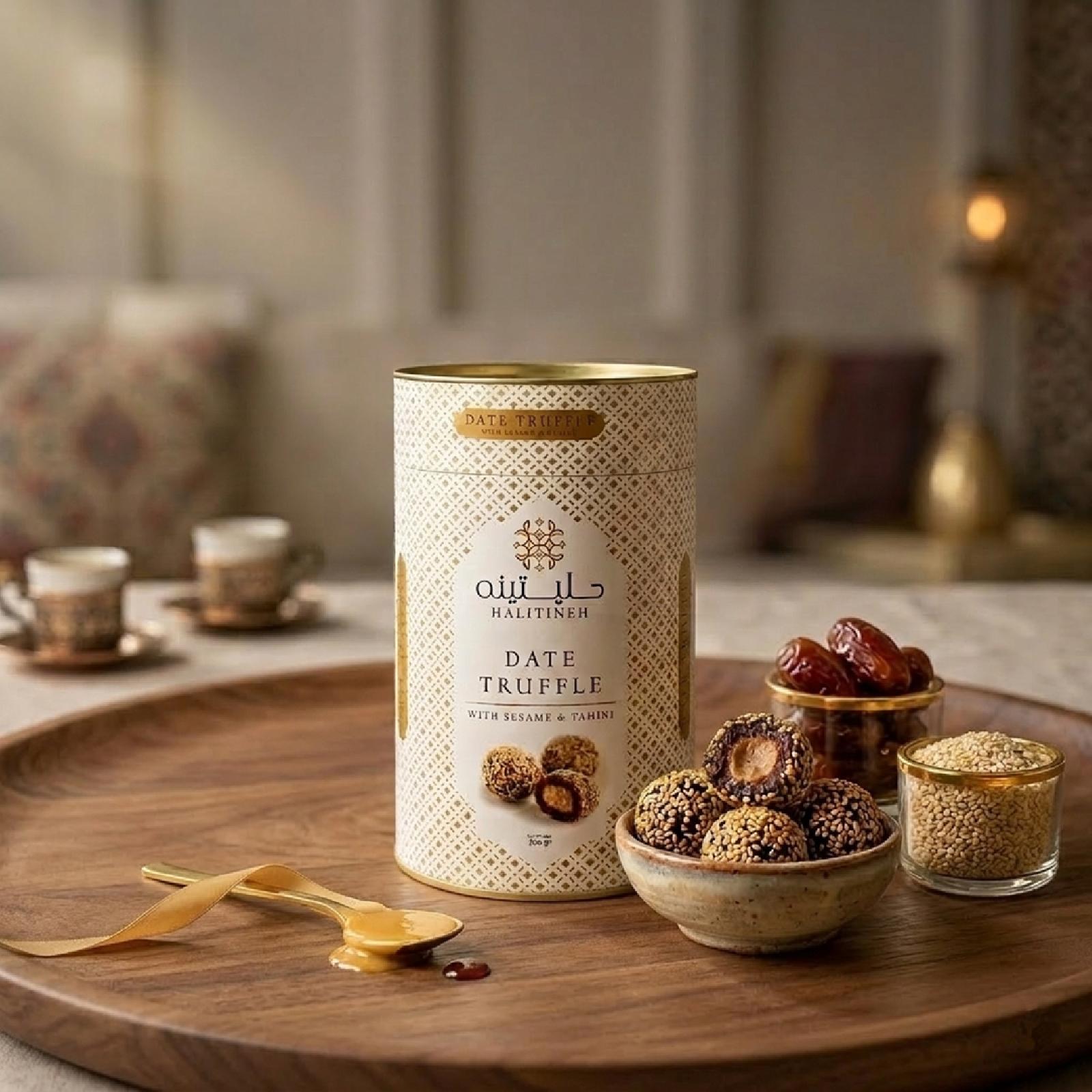 يتكون هذا المنتج أساساً من التمر المغطى بالسمسم والمحشو بالطحينة الطبيعية بالكامل، وبالإضافة إلى مذاقه اللذيذ، فإنه يوفر فوائد صحية جمة.