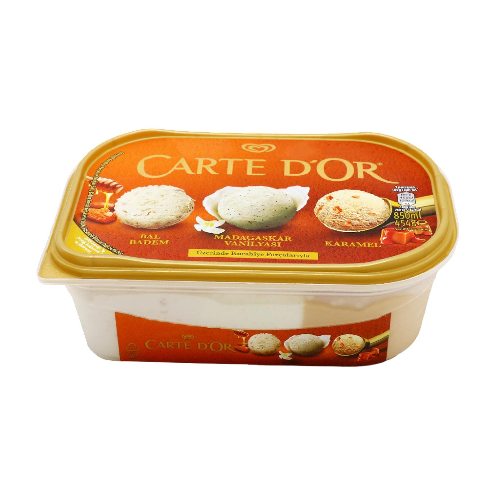 Delicious and distinctive ice cream with honey, almond, vanilla and caramel flavors that combine the natural sweetness of honey and almonds, the harmony of caramel, and the lightness of vanilla.