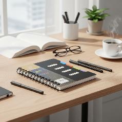 A distinctive small notebook with a SIM card that contains several sections, each with a specific color. You can use it for notes, studying, or work.
