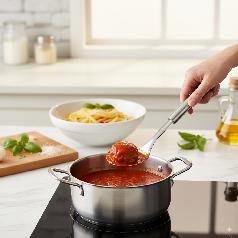 ملعقة مميزة ومتعددة الاستخدامات بثقب بداخلها يمكنك استخدامها لغرف الباستا اكرات اللحم او لتكوين كرات اللحم بواسطة الثقب الذي بداخلها.