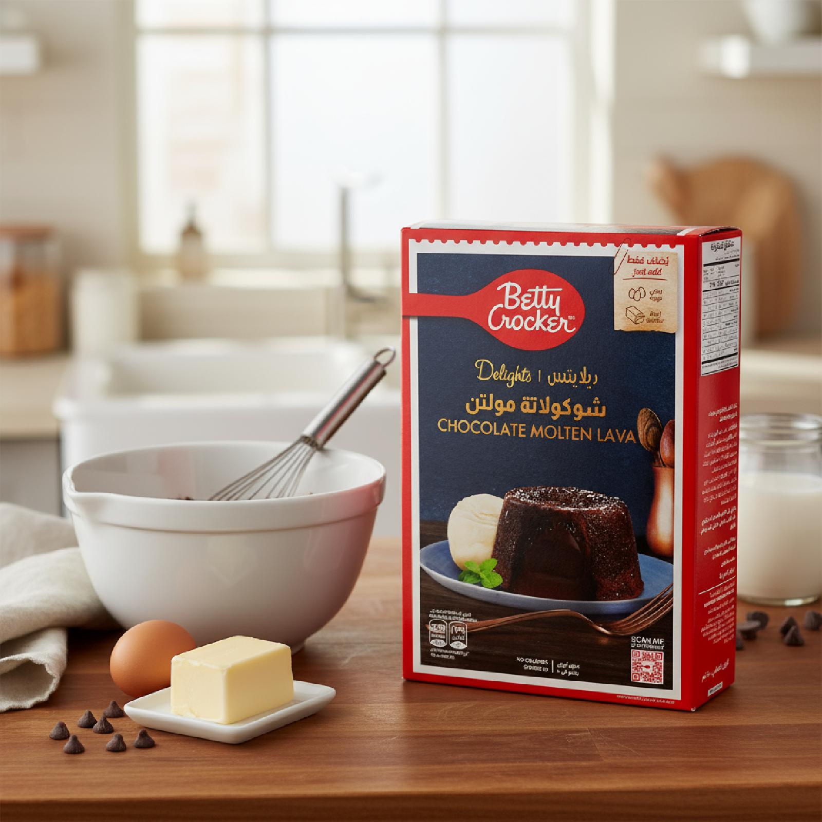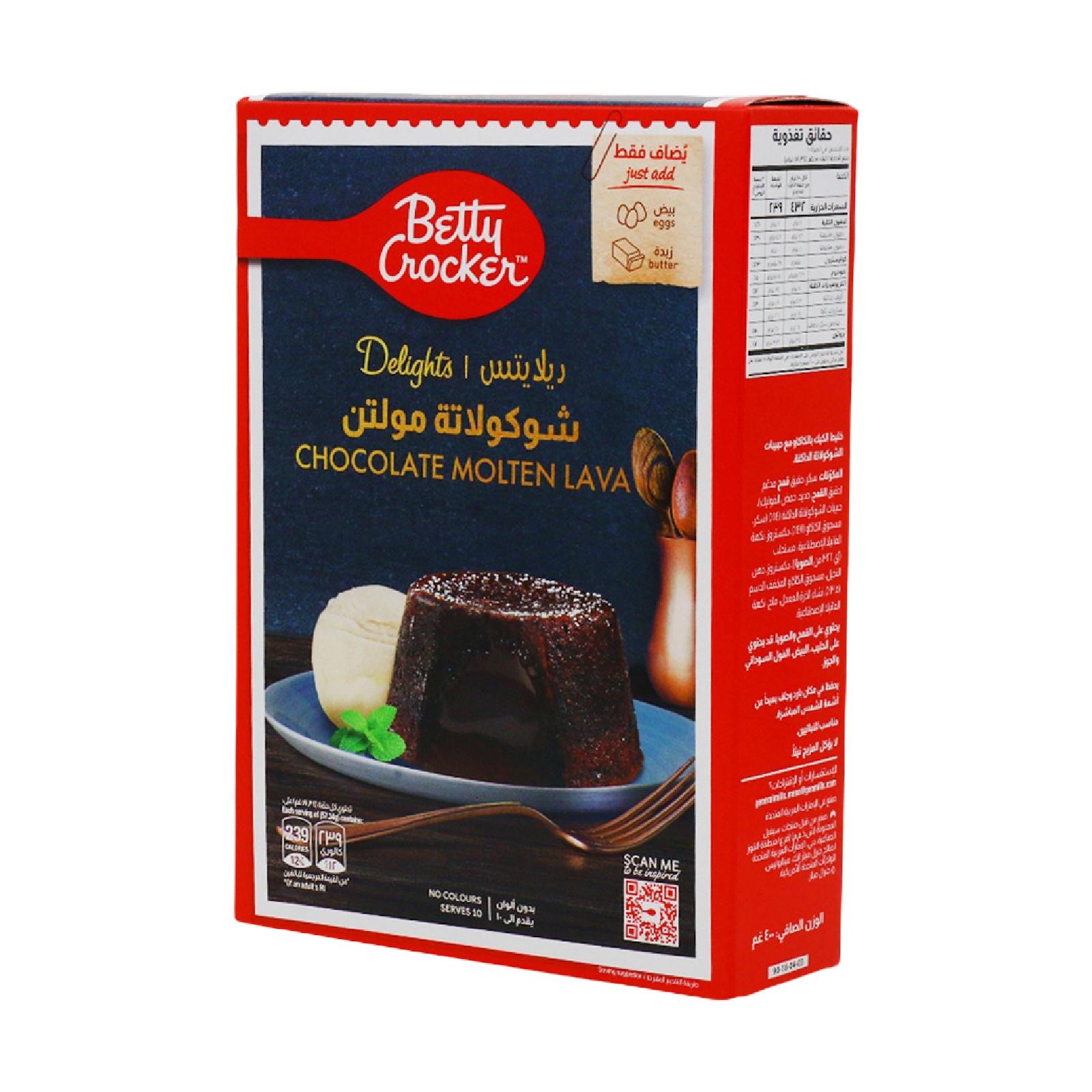خليط كيك بنكهة الشوكولاتة المذابة يحتوي على مكونات عالية الجودة تجعله خيارًا مثاليًا للوجبات الغذائية خليط متكامل فقط قم باضافة الزبدة والبيض.